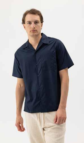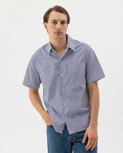Bowling shirt in crispy 100% high quality Cotton Poplin. Yoke, colour matching buttons and one chest pocket. Slits at sides. Relaxed fit.