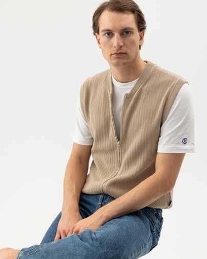 Structure knitted vest in organic cotton. 12 gauge. Slightly V-neck and two way YKK metal zip at front. Thin ribbed trims. Regular fit.