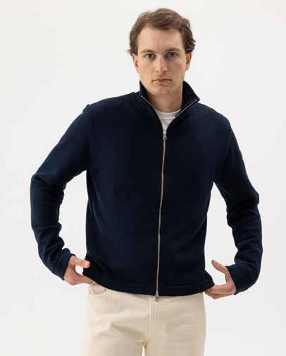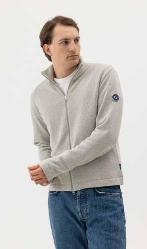 Fullzip sweater in 100% organic cotton. 7 gauge. Two way YKK metal zip. Flat knitted hem and collar. Woven windproof lining. Regular fit.