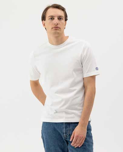 Essential tee in organic cotton jersey. Small slit in sides and thin rib in rounded neckline. Embriodery on sleeve in klein blue color. Regular fit.