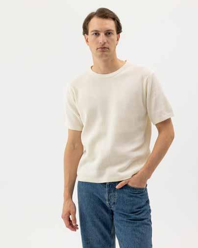Structure knitted tee in organic cotton. 12 gauge. Short sleeve, rounded neckline and tubular hems. Relaxed fit