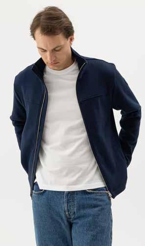 Milano knitted jacket in organic cotton. 12 gauge. Two way YKK metal zip at front. Yoke and side pockets. Folded hems. Woven windproof lining. Regular fit.
