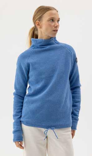 Flat knitted sweater in organic cotton. 5 gauge. Raglan sleeves with fully fashion details. High, rib knitted collar and ribbed endings. Slits at sides. Woven windproof lining. Relaxed fit.