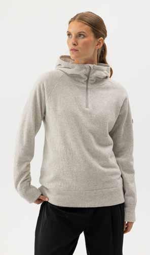 Designed for light outdoor activities, our windproof sweaters and jackets feature water-repellent quilted details on the most exposed areas. The fabric is called Piumi and has a water repellent treatment. The treatment is organic and free of fluorocarbon, a common chemical used to produce waterproof fabrics. The fabric has been certified with the Oeko-Tex® Standard 100, which guarantees that the fabric is free of harmful substances. Piumi is also a breathable fabric. This maintains the benefits and properties of the knitted fabric, such as transport away moisture and retaining heat.