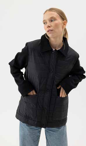 Jacket in knitted organic cotton combined with woven quilt. 12 gauge. Knitted sleeves, collar and back part. Woven quilt at front and yoke at back. Colour matching press buttons. Woven windproof lining. Regular fit.