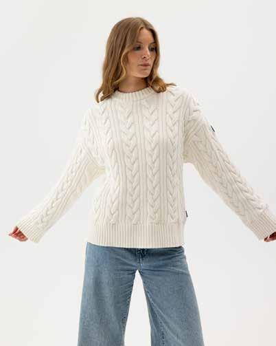 Heavy knitted sweater in organic cotton. 5 gauge. Crew neck with characteristic cables all over for a classic and timeless look. Ribknit hems and dropped shoulders. Woven windproof lining. Relaxed fit.