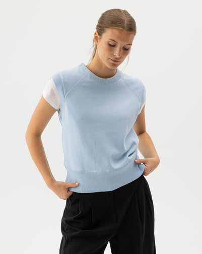 Thin knitted vest in organic cotton. 21 gauge. Decorative fully fashion details on the shoulders and rounded neckline with thin rib. High ribs at bottom. Woven windproof lining. Regular fit. Perfect for golf.