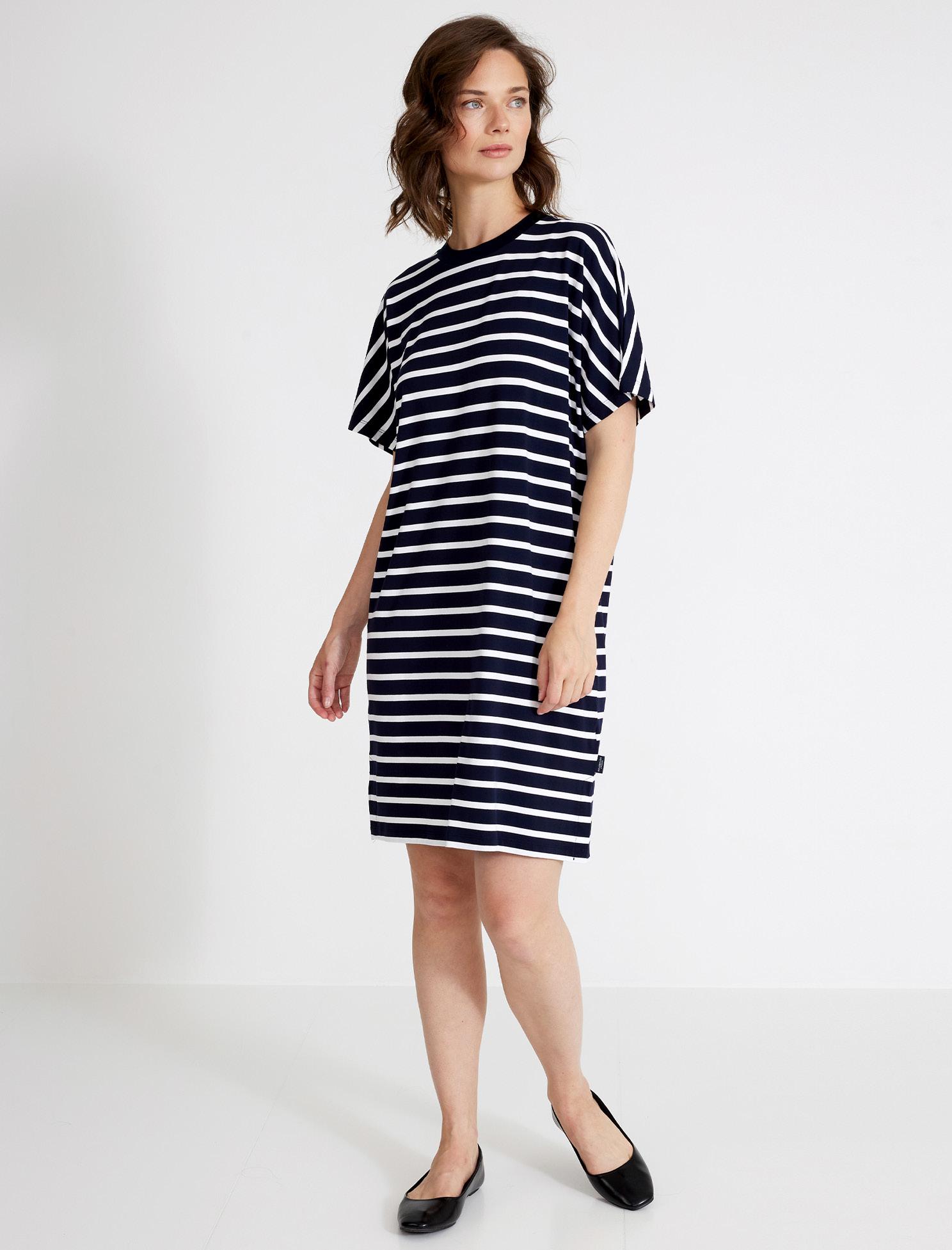Firm knitted dress with dropped shoulder.