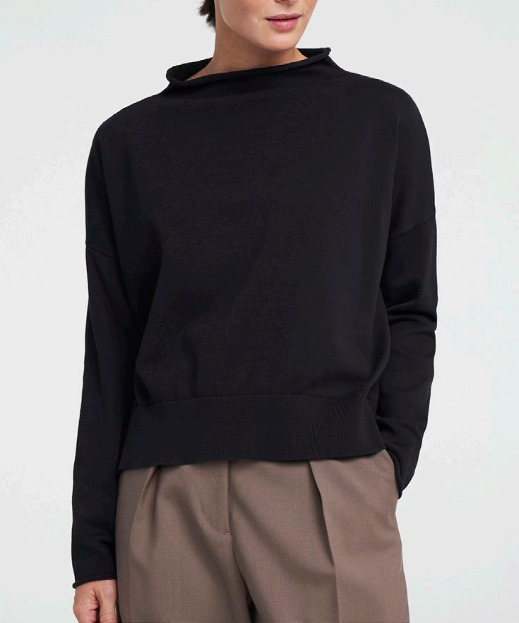 Turtle neck. Dropped shoulder. Slit in sides.