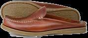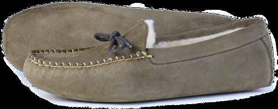Soles are stitched and glued to the moccasin upper, which is one piece of leather wrapped under the foot.