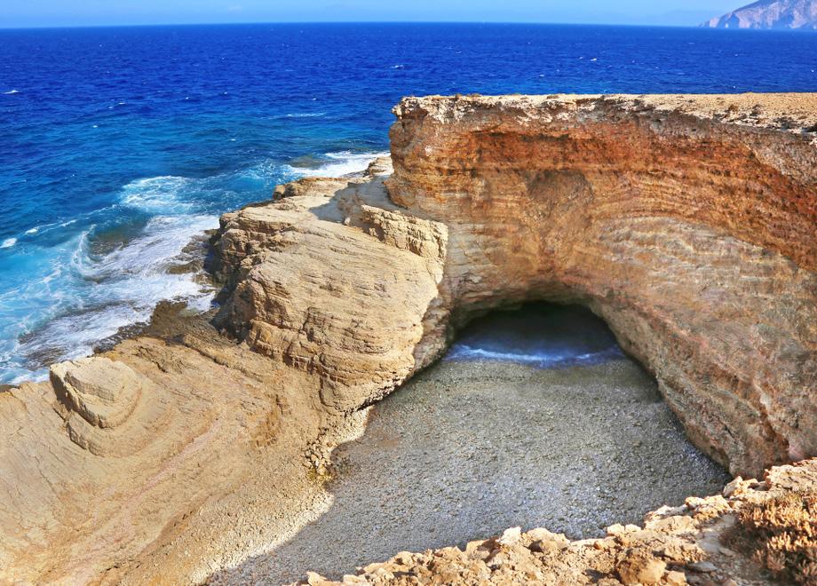 With its turquoise waters and the sandy beaches! We will stop at Kato Koufonisia - the name of Koufonisi comes from the word ‘Koufio’ hollow and ‘Nisi’ island because of all the sea caves around the islands. Drop the anchor on the southeast part of Kato Koufonisi. Let’s take a plunge here and then prepare for lunch! All around the island the waters are turquoise and shallow therefore anchoring shouldn’t be an issue.