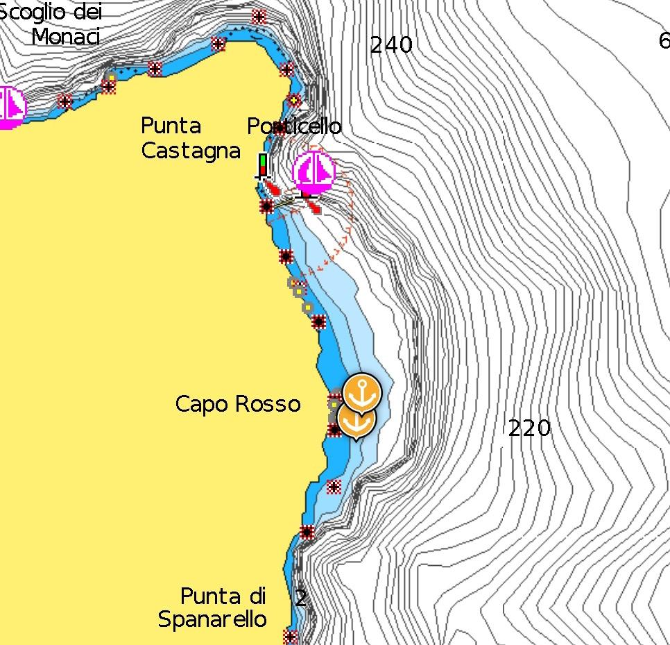 the Montenassari rock. You can anchor here at 12-16 metres, preferably during the daylight hours and with a snorkel because of the rocky seabed. Arm yourself with a mask and flippers and enjoy the view!