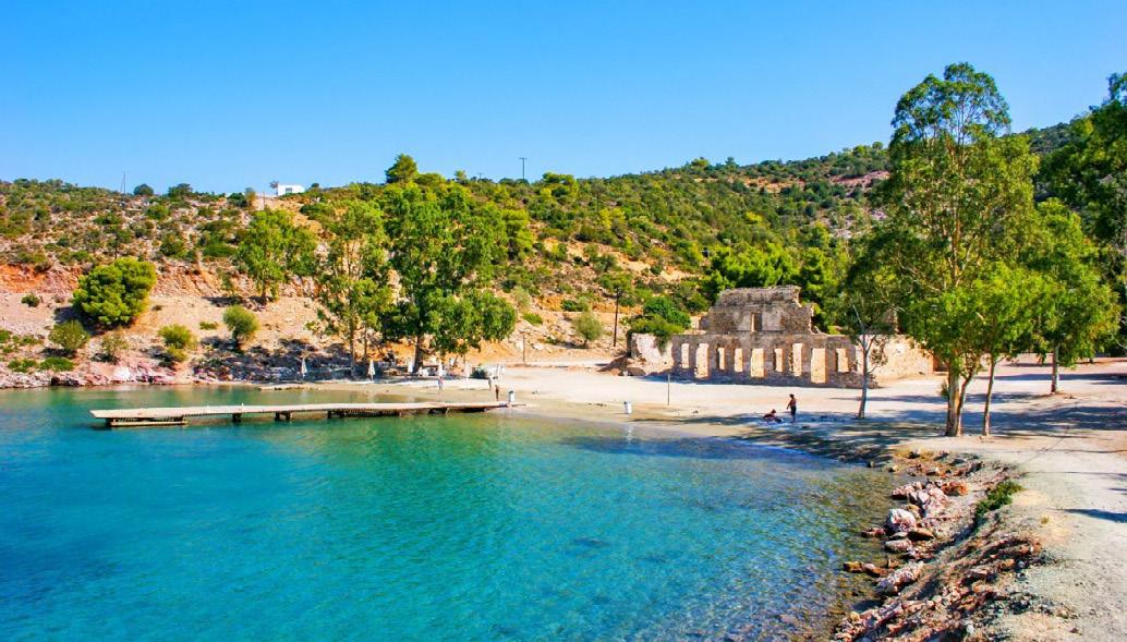 south coast as you approach the first small beach on the island west part. Here, I recommend anchoring from 11 metres upwards to avoid the large boulders that have crumbled from the rock face over time. On the south side, as an alternative to the port, you can also moor near the many buoys available in front of the village of Pecorini a Mare. Here I strongly recommend stopping by the Bar il Saloon, where you can chill in the evenings indulging in a glass of Malvasia wine, which’s so typical around here.