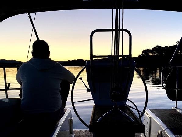 might rain a few drops now and then. After all, the wind is expected to freshen up further in the course of the afternoon, and it might rain a few drops now and then. Next Saturday we’ll be in Dubrovnik for another night anyway, and with the sunshine forecast we’ll have plenty of time to explore the old town. I make myself comfortable on the forecastle, listen to the beating of the shrouds, I enjoy some lazy reading. We decide to stay on board for dinner - the frozen burgers we had the previous day in the restaurant were not that great, we’d rather make some delicious wraps and enjoy a glass of red wine on board.