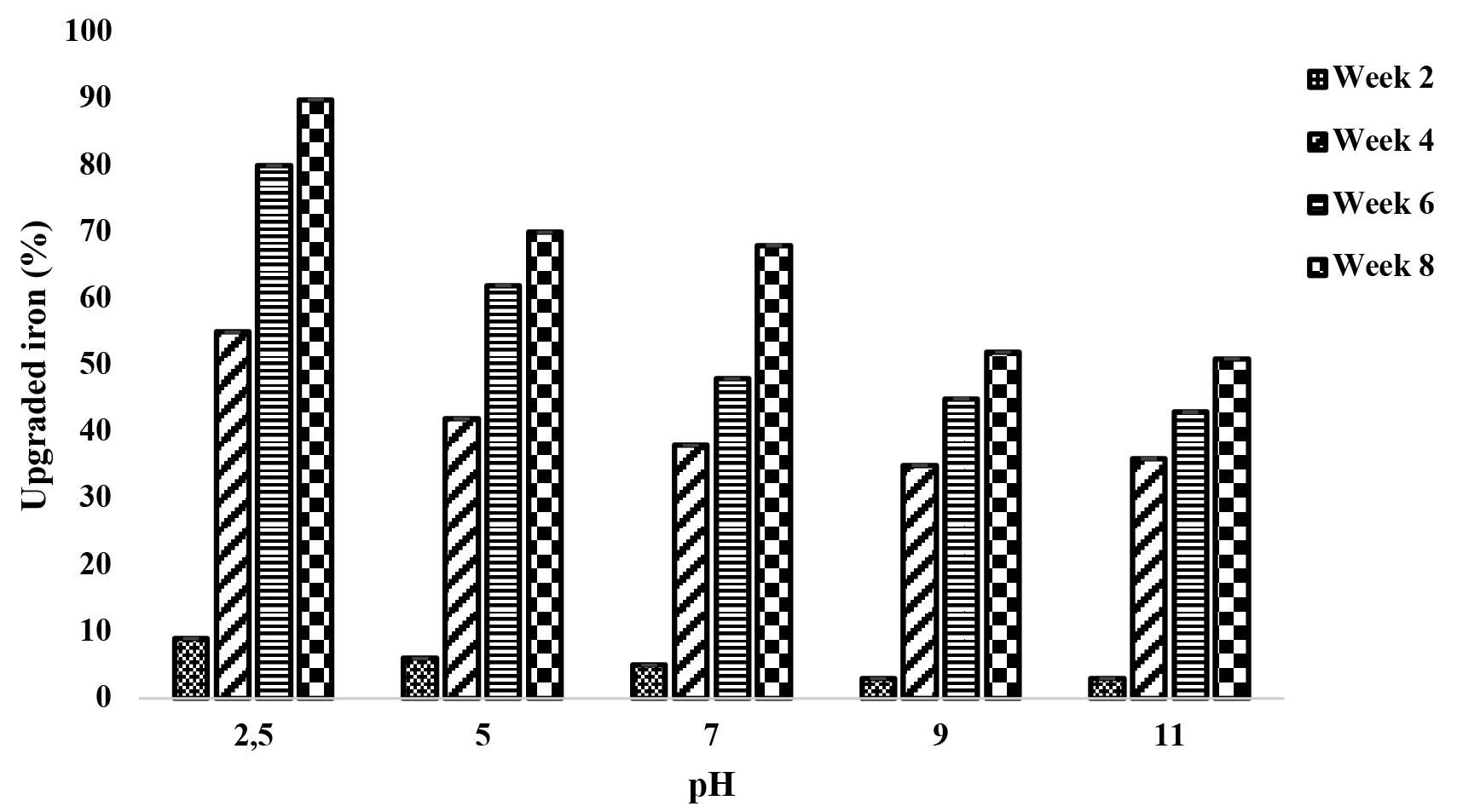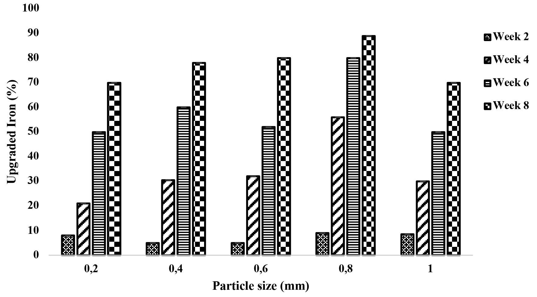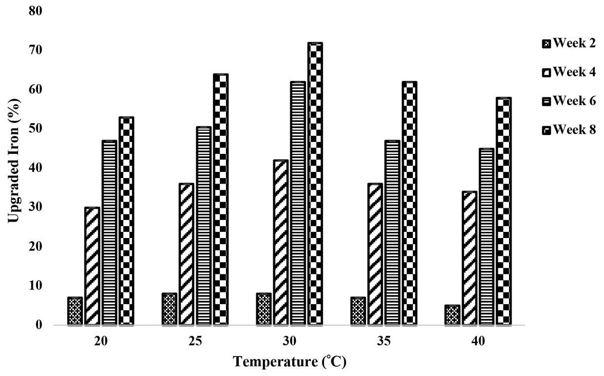 In this study, the efficacy of Providencia vermicola KUBT-1 in the leaching and beneficiation of Agbaja iron ore, a Nigerian low-grade ore containing about 43%–52% iron, was evaluated under varying conditions of temperature, ore particle size, and pH. Correlation analysis of the results with Pearson’s correlation model showed a positive correlation between iron upgrading and sulphur-phosphorus removal (r =1.000, and r =0.967), respectively. These results present Providencia vermicola KUBT-1 as a promising candidate for large scale leaching and beneficiation of Agbaja iron ore.