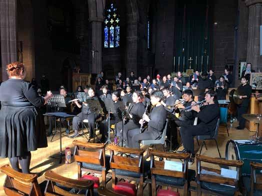 Once every four years, the Symphonic Band and Chamber Choir’s annual travel goes international. This past summer, led by band director Sadie Queally-Sammut, more than 50 Lancer musicians and choristers traveled to Scotland for eight days of performances, sightseeing and cultural encounters.