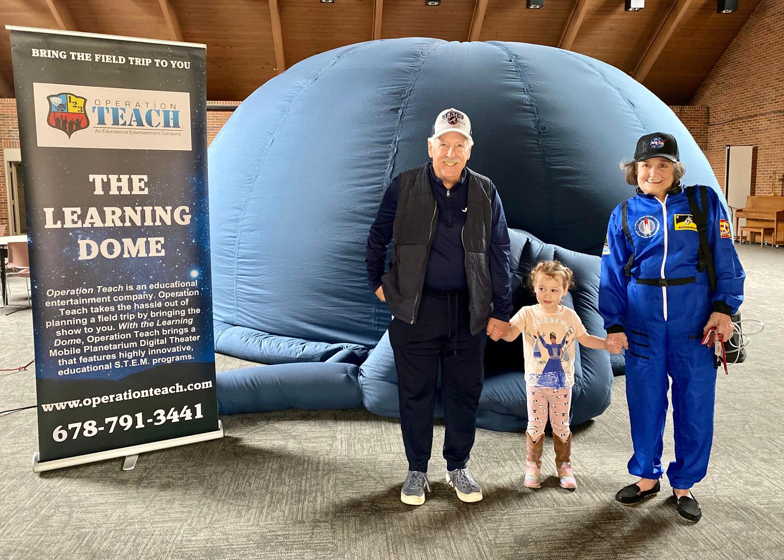 For the Tennille family, Saint Anne's involvement is a family affair. Bode (Pre-K) and Tapley (Twos) have attended the Day School since their infant days; their older brother, Townsend, is a Saint Anne's graduate. Leah Tennille, their mother, is an avid church member and parent volunteer who also substitutes for the Day School. Next door at the Saint Anne's Terrace live Leah's parents, Michael and Margaret Kannensohn. The grandparents often walk the short path connecting the Day School and Terrace to pick up their grandchildren, and on occasion, they surprise Bode and Tapley as their class' Mystery Reader. When the Cultural Arts Learning Dome inhouse field trip visited, Michael and Margaret eagerly joined.