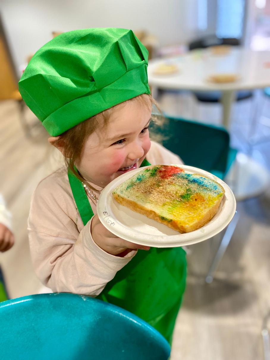 No February is complete without Saint Anne’s annual Sweetheart Breakfast. This year parties moved to the classrooms where each child shared in a Valentine’s activity with their sweetheart, a special person in their lives. The yearly Hearts for Heroes campaign continued spreading love by giving Valentines and goodies to local heroes, reaching staff at CHOA, Northside Hospital, and Fire Stations No 5 and 26 Additionally, Mardi Gras was also observed with a bead parade, King Cake, and dance party.