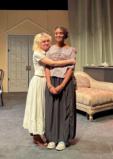 The stage is reset; the crew creates a dining room at lightning speed. Birgitta directs the Gossips to peer in through the set windows, to remain a part of the scene even though they are not written on the page. The actors on stage are encouraged to play the scene bigger, with more emotion. Students waiting in the wings sing “Don’t Stop Believing” in three-part harmony.