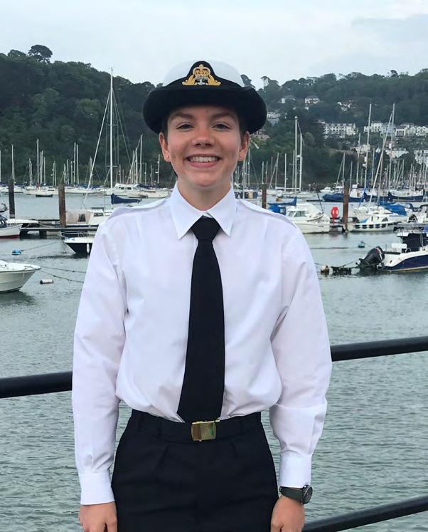 I am training at the Britannia Royal Naval College in Dartmouth as an Officer Cadet. In our intake of 120, 17 of us are women. The average age is 23, many having already been to university or starting a second career, and I’m the youngest one at 18. We have two terms of training in Dartmouth, firstly Militarisation (learning to be a member of the Military rather than a civilian) and secondly Marinisation (learning specific to the Navy rather than the other forces). I should be ‘passing out’ in December as a Midshipman which is (the first rank of a Commissioned Officer). After Christmas I have Common Fleet Time which is a posting on a ship (could be anywhere!) and then back to Dartmouth next May for 15 weeks as a Sub Lieutenant. This will be specialised Initial Warfare Officer Training. I will then have various courses at Collingwood - aviation warfare, navigation, surface warfare etc. The days can be very long and usually any ‘free’ time is taking up with ironing all our kit but I’ve met some great friends already and I am loving ‘navy life’.