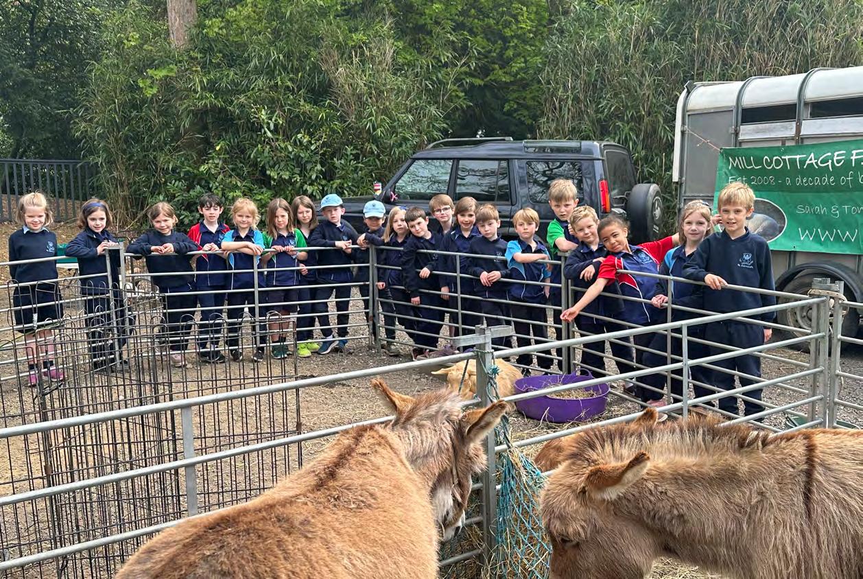Nursery and Reception enjoyed a really lovely visit from Mill Cottage Farm this term. The children got to meet Maggie and Bramble the donkeys, George and Peppa the piglets, Marigold the chicken, Gobble the turkey, sheep, goats, ducks, rabbits and guinea pigs. We love having the farm to visit every year and it is really interactive experience for the children, who get involved with feeding and brushing the animals.