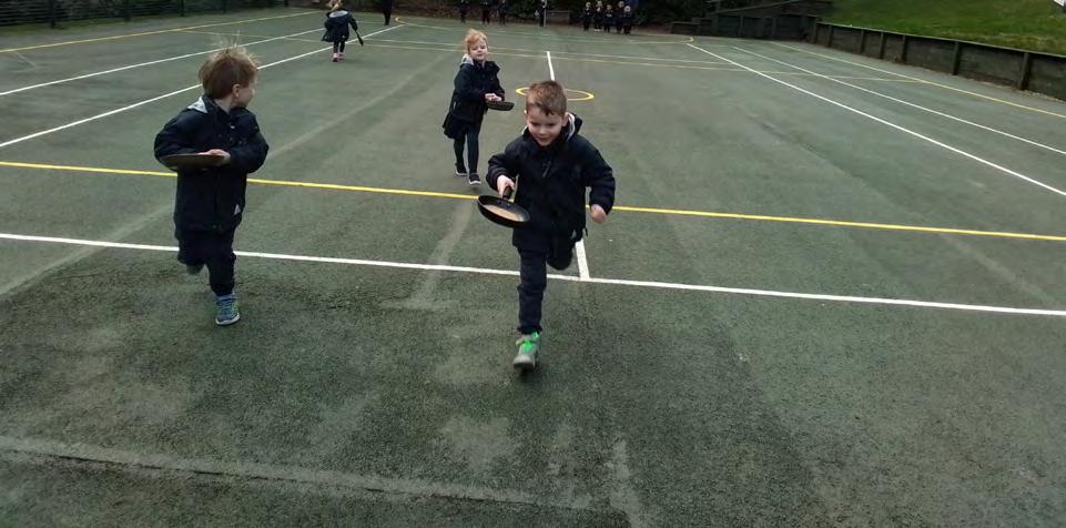 Nursery had their own version of pancake races, enjoying making their own ‘pretend’ pancakes to practice flipping. Some future pancake race stars in the making for sure.