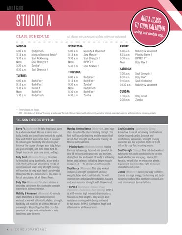 All classes are 45 minutes unless otherwise indicated.