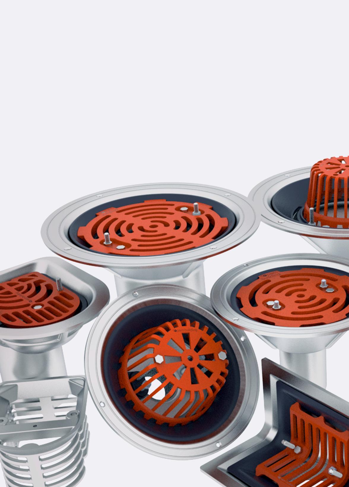 Robust cast iron shower gullies in 100mm and 50mm with a range of stainless-steel gratings to suit most types of solid or suspended floor construction.