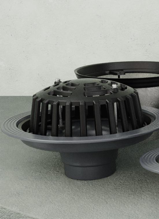 The VortX aluminium roof outlets are manufactured in LM6 Aluminium Silicon casting alloy to BS EN 1706:2010, to suit most roof finishes.