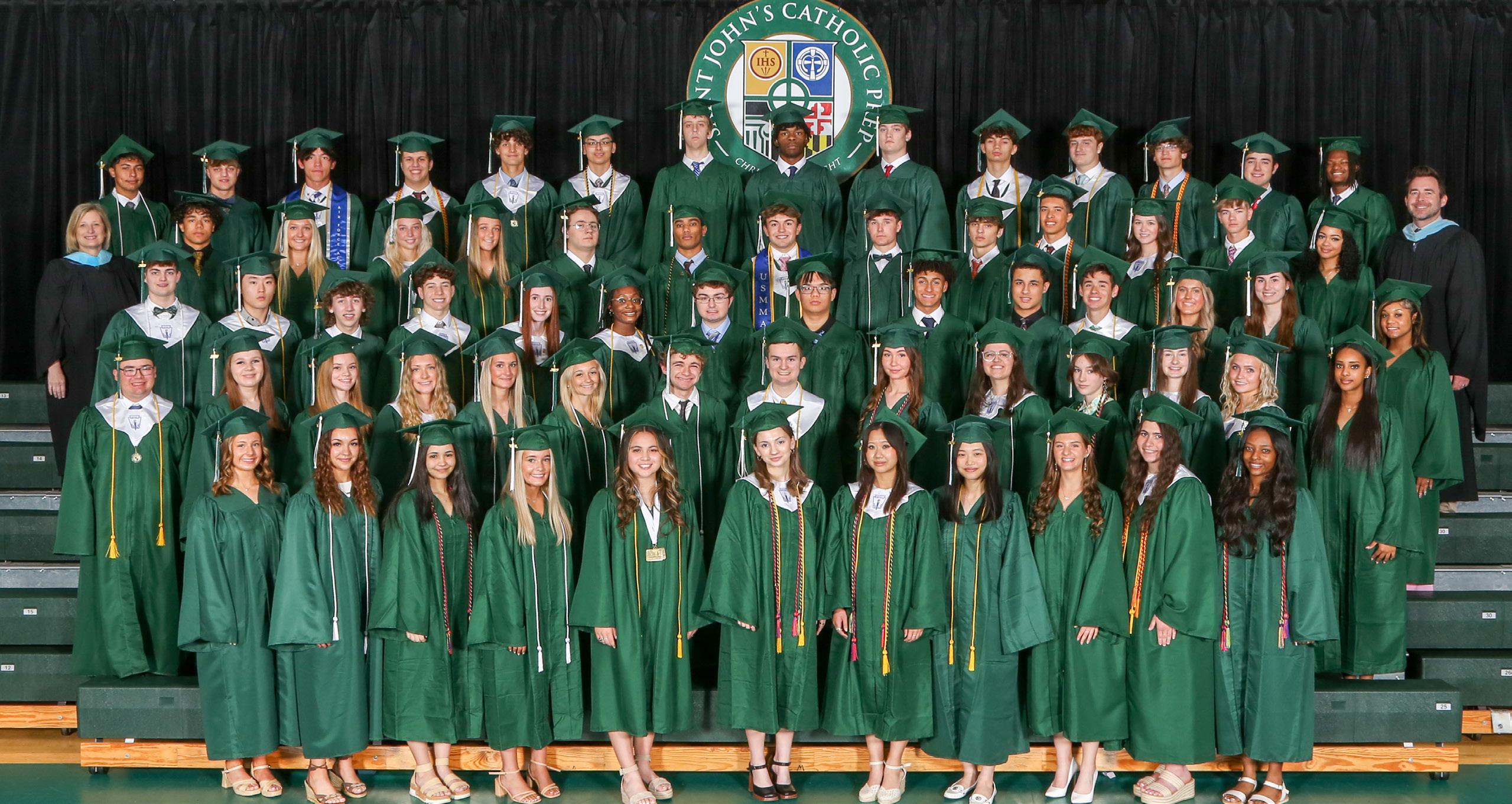 The Saint John’s Catholic Prep Class of 2025 was a very exceptional and dynamic group of 68 students. In addition to having a 100% college acceptance rate, they were awarded over $13.3 million in academic and athletic college scholarships. Members of the class of 2025 will go on to attend 56 different colleges and universities in 17 different states. Throughout their four years at SJCP, they earned over 7,905 hours of community service exemplifying the school’s core values of faith, leadership, scholarship, honor, and service.