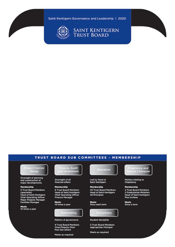 Without exception, the current Trust Board members, like all those before them, are all extremely hardworking individuals who give an enormous amount of their time voluntarily for the betterment of our students and their place of learning. All Trust Board members donate their professional expertise and time to Saint Kentigern and no honorarium is paid.
