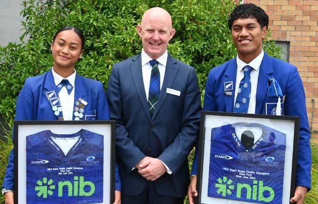 We were privileged to welcome back a few familiar faces on 20 February: alumni and Blues players Dalton Papali’i, Finlay Christie, Sam Nock, Ben Ake, Xavi Taele, and Jaymie Kolose. They returned to the College on behalf of the Blues to recognise and thank Saint Kentigern for our College’s role in their development. The Blues rugby players presented the College with framed 2024 Blues Super Rugby Pacific and Aupiki Finals jerseys, complete with a special plaque of thanks.