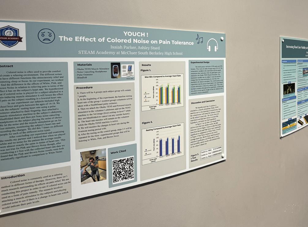 The three winning students included Aeden Owens for his project creating an HHO Generator and sharing the science behind splitting water molecules to create hydrogen gas; Blake Roach for innovating on painted lane-lines to increase visibility in rainy road conditions; and Isaiah Parker and Ashley Stead for their project evaluating the human physiological response to different colored noise.