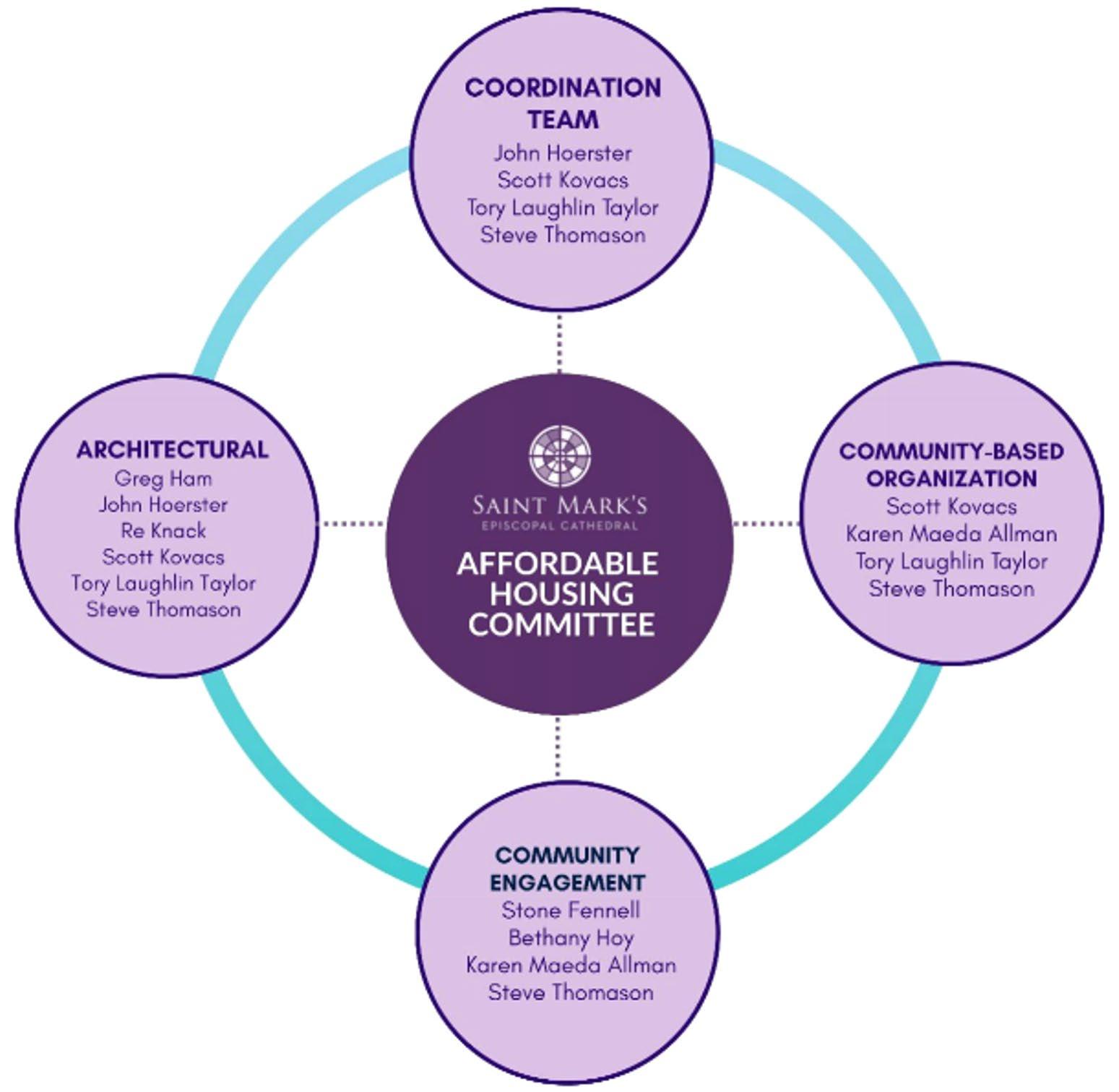 The members of the Affordable Housing Committee (Karen Maeda Allman, Stone Fennell, Greg Hamm, John Hoerster, Bethany Hoy, Re Knack, Scott Kovacs, and Dean Steve Thomason) were delighted to announce in the Fall 2025 Rubric and at a special parish forum that Redwood Housing had been selected as our development partner for the St. Nicholas Affordable Housing Project, and that Saint Mark’s and Redwood had entered into a Memorandum of Agreement (MOA) outlining key terms of the Saint Mark’s/Redwood partnership. The MOA was a major and exciting step forward that has spurred a lot of positive momentum.