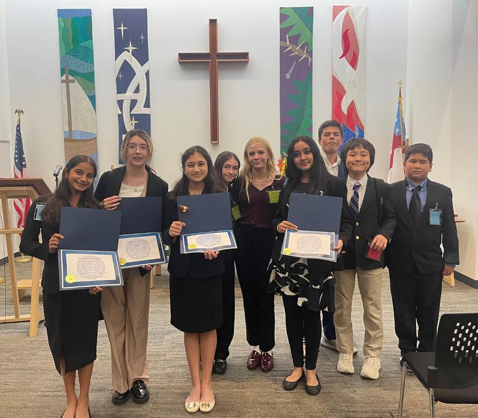 Nine Middle School delegates from the SMH Junior Model UN Club attended a conference at Trinity Episcopal School in Austin in November. Four of our delegates brought home accolades: Abegail Hockersmith ’31 and Aashi Bhakta ’31 received Distinguished Delegate awards, and Sanya Singh ’30 and Bella Trivedi ’31 received Best Delegate awards.