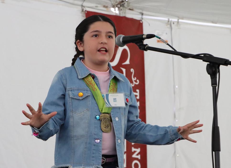Lily May ’33 has been named a National Youth Storyteller for 2025, an honor given to only ten students nationwide. Lily wowed audiences at the Timpanogos Storytelling Festival in Utah with her original tale, “Old Coyote: A Texas Folktale,” sharing the stage with world-renowned storytellers.