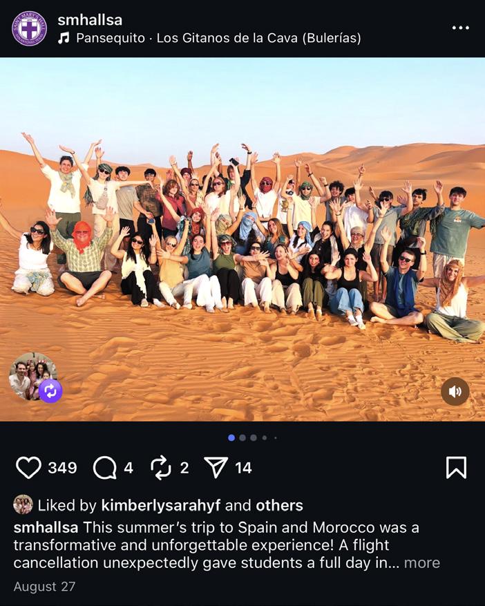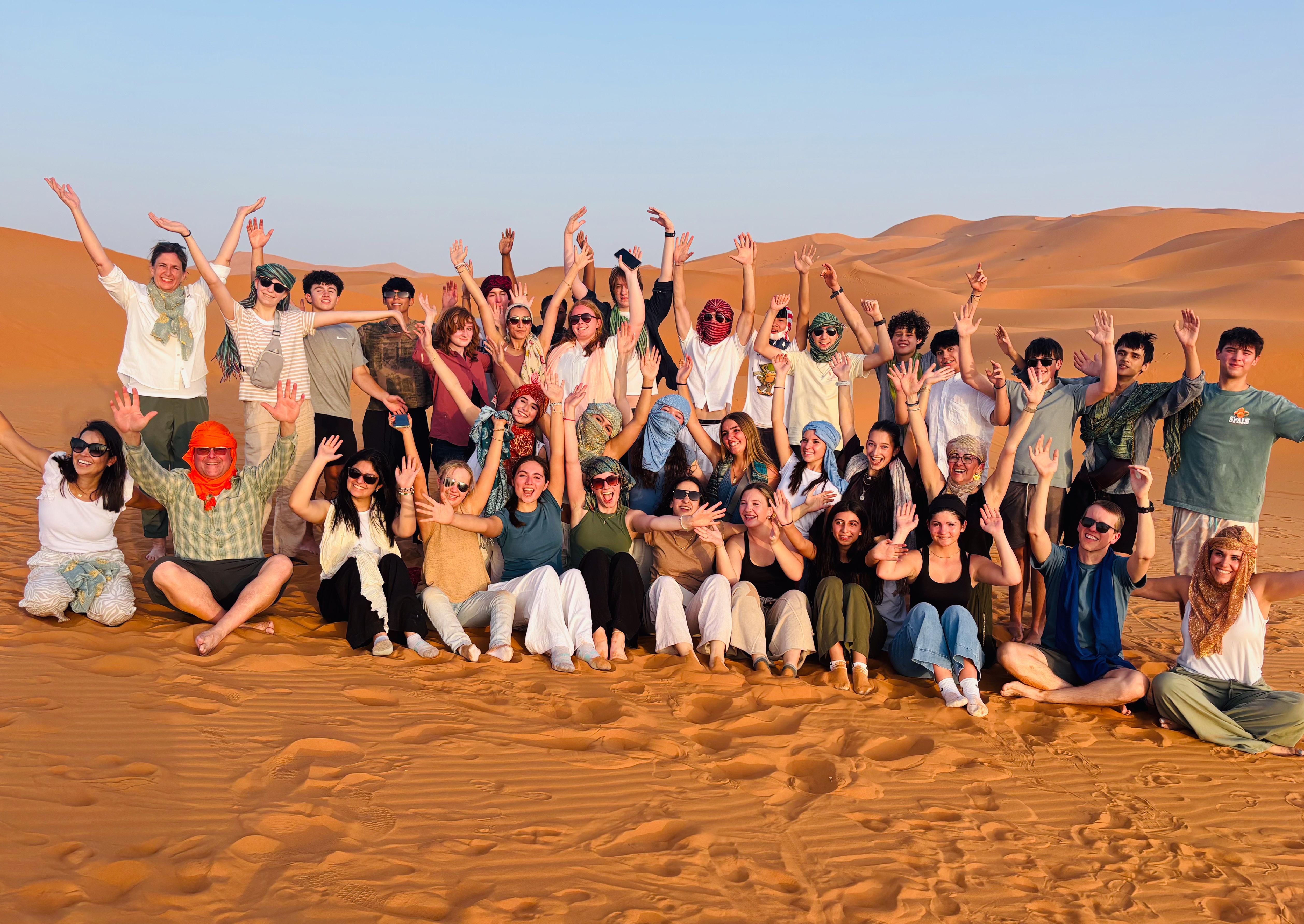 Last summer, a group of Upper School students traveled to Spain and Morocco. Here they are in Merzouga, a village in Southeastern Morocco. Students trekked up the sand dunes of the Sahara Desert via camelback and went sandboarding before enjoying a breathtaking sunset and traditional Berber music. From Marrakech and Ouarzazate - where Game of Thrones fans stood in awe of filming locations - to the grandeur of the Hassan II Mosque in Casablanca, the trip provided countless opportunities for discovery. Through it all, students grew more curious, resilient, and globally minded. This kind of travel experience is deeply impactful because it takes learning beyond the classroom and transforms it into a lived experience - one that shapes not just what students know, but who they become.