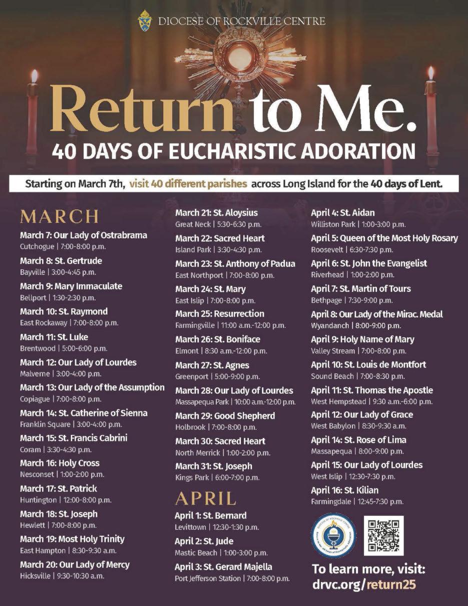 As a time of refection and conversion, the Church gives Lent to us. It has a dual nature as a penitential, joyful season Penitential in the sense that we are called to look deep into our hearts and discover those moments or activities that have brought us away from the path of the Lord. As we heard on Ash Wednesday, “come back to the Lord with all your heart.” Tis, of course, takes work, dedication, and an acknowledgement that we sin and need God’s grace. Tis is the beginning of the second aspect of the season…joy. We are joyful because we know all that God has and continues to do for us. Te understanding that we are loved, even in our sinfulness, must and should be a cause for joy for each of us as we struggle to leave behind the pain of sin. God does not want us to remain in our sin, but to move in freedom as His children.