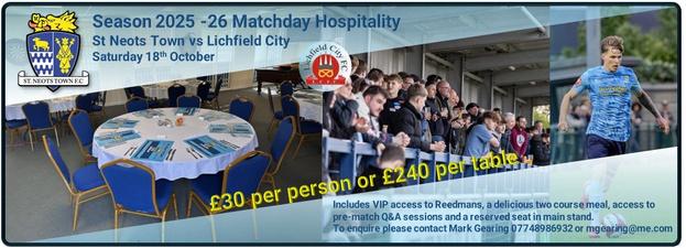 St Neots hopes of a second half recovery were quickly extinguished when four minutes after the restart Tyler Dacre added a third goal for the hosts. St Neots began to look ragged, and Michael Amaeshike picked up a caution for a late challenge. Then on the hour all hopes of a comeback for the visitors were extinguished when a long forward pass freed Jack Goodman to take on the final defender and beat James Goff with a crisp finish.