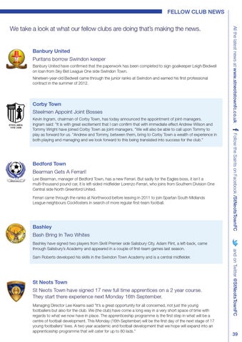 St Neots Town St Neots Town have signed 17 new full time apprentices on a 2 year course. They start there experience next Monday 16th September. Managing Director Lee Kearns said “It’s a great opportunity for all concerned, not just the young footballers but also for the club. We (the club) have come a long way in a very short space of time with regards to what we now have in place. The apprenticeship programme is the first step in what will be a centre of football development. This Monday (16th September) will be the first day of the next stage of 17 young footballers’ lives. A two year academic and football development that we hope will expand into an apprenticeship programme that will cater for up to 80 lads.”