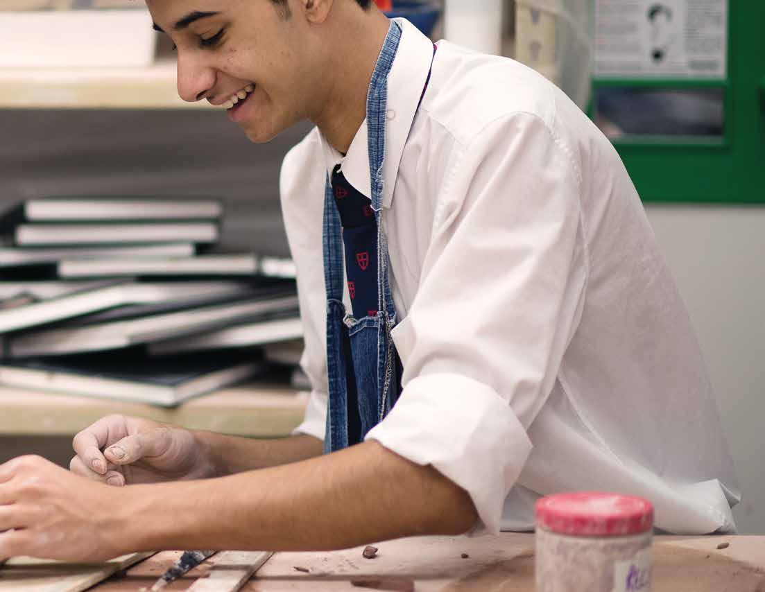 Whether it’s designing, building, and lighting stage sets, acting, high-tech animation, painting, drawing, or sculpting, Saints’ boys love to explore and develop their creative talents. The choices at St. George’s School are unparalleled and include opportunities to act in semi-professional productions annually, play in one of 10 major bands and ensembles, take a master class with renowned international artists and musicians, compete for one of the much-prized arts scholarships, or exhibit their work publicly. Every boy becomes an Artistic Boy at some point during their time at Saints.