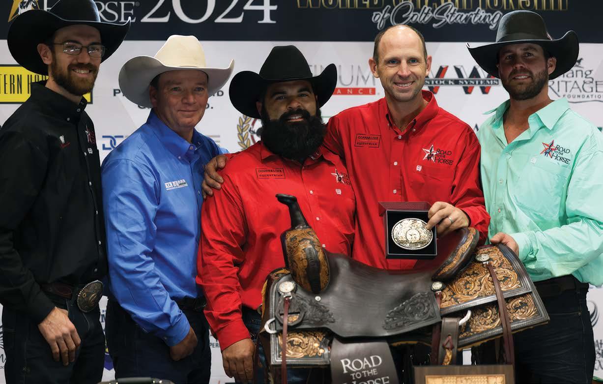 TIK MAYNARD ‘00 (in red, without the Stetson) takes Gold at Road To The Horse 2024.