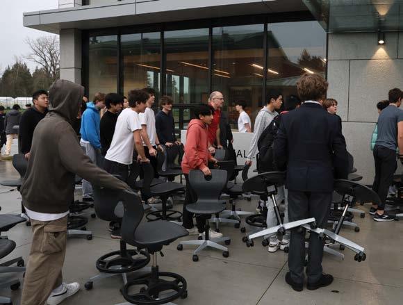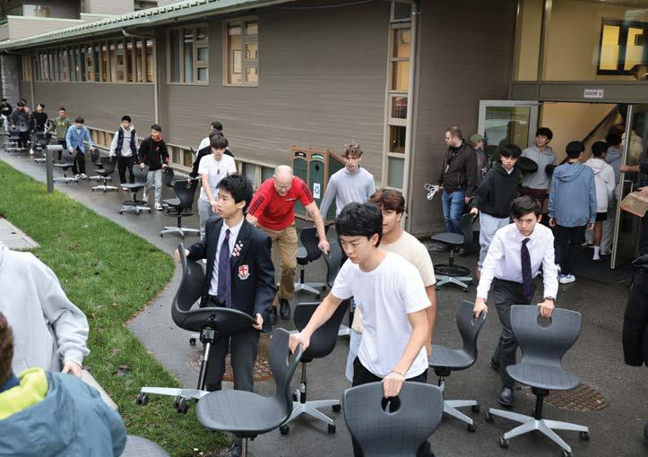On Friday, December 20, 2024, the Senior School students, staff, and faculty participated in the Great Move. Each student moved their chair into the new Senior Shool and enjoyed the first opportunity to see their new home. This move harkens back to the Great Move that took place in March 1980 when the Junior School relocated from the original school property into the newly acquired and renovated Society of the Sacred Heart's Point Grey School, often referred to as the Convent of the Sacred Heart.