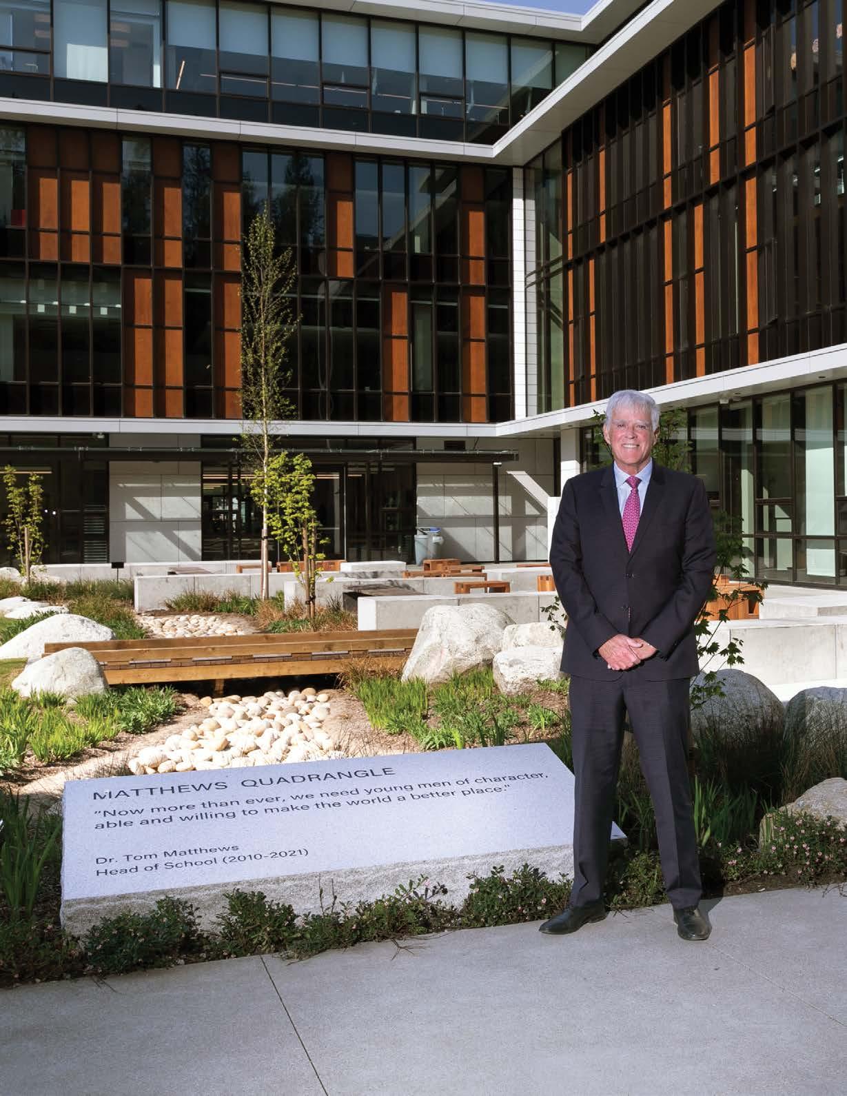 And now, with the opening of our new Senior School buildings, we stand once again at one of those generational moments, an audacious achievement. We will soon share, with the restless pursuit of future excellence essential at St. George’s School, how these stunning new buildings, intentionally designed, will be the spaces that catapult our boys’ experience and learning forward. But for a moment, we should pause and celebrate this spectacular achievement. Dr. Tom Matthew’s vision, which was shared, developed, and supported by many incredible Board members and school leaders over 15 years and required considerable financial support from our families, even through the COVID-19 pandemic, has prevailed. We have successfully produced one of North America’s preeminent independent school spaces.