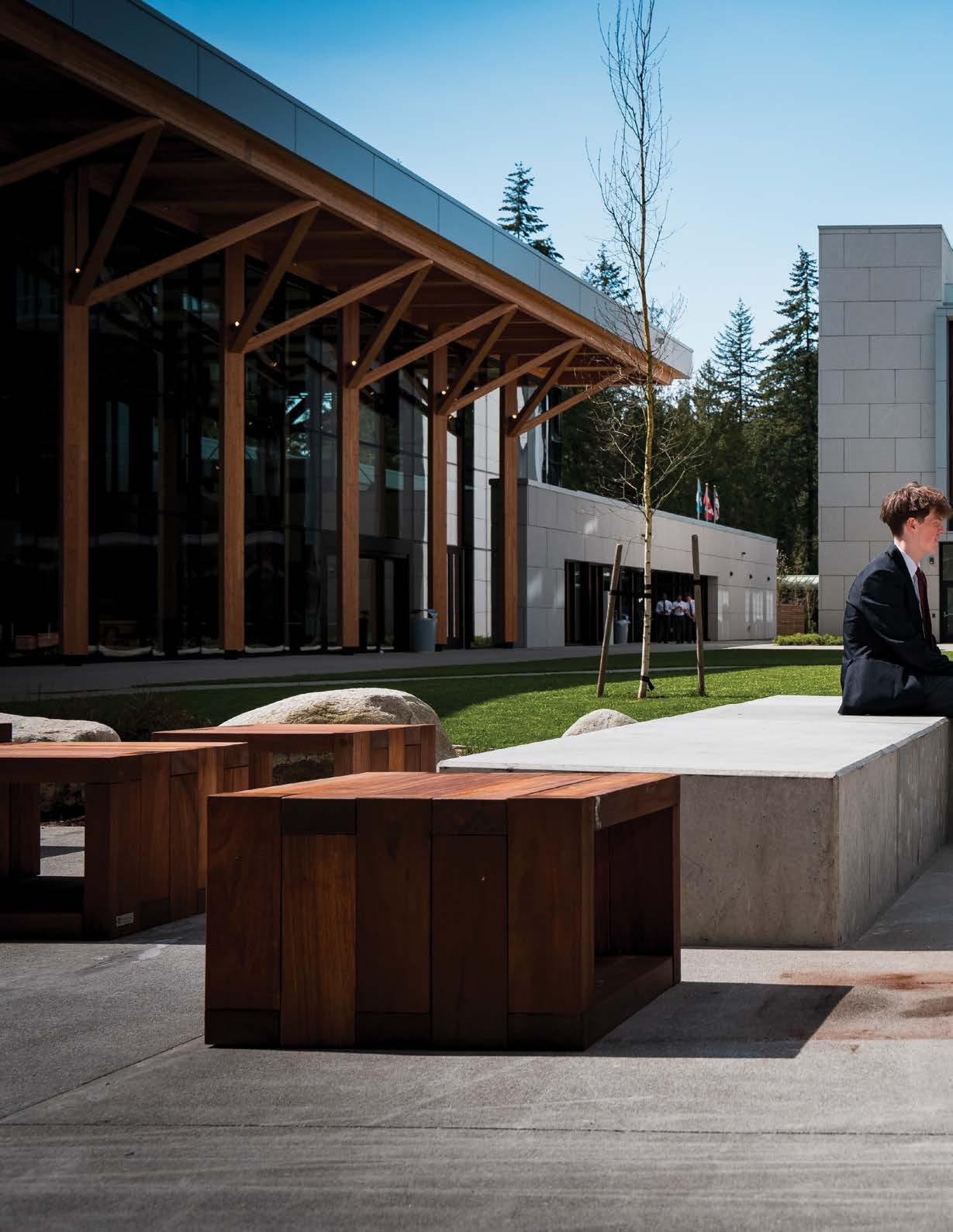 Following the decision to create a new Senior School, it became essential to develop an architectural vision for the new buildings. The team established environmental sustainability as a nonnegotiable aspect of the design, with the requirement that the new buildings should meet the LEED Gold standard. As well, Matthews and others favoured a modern West Coast aesthetic featuring wood and natural light. Mr. Art Gensler, a world-renowned architect introduced to the School by Dr. Jake Kerr, embraced