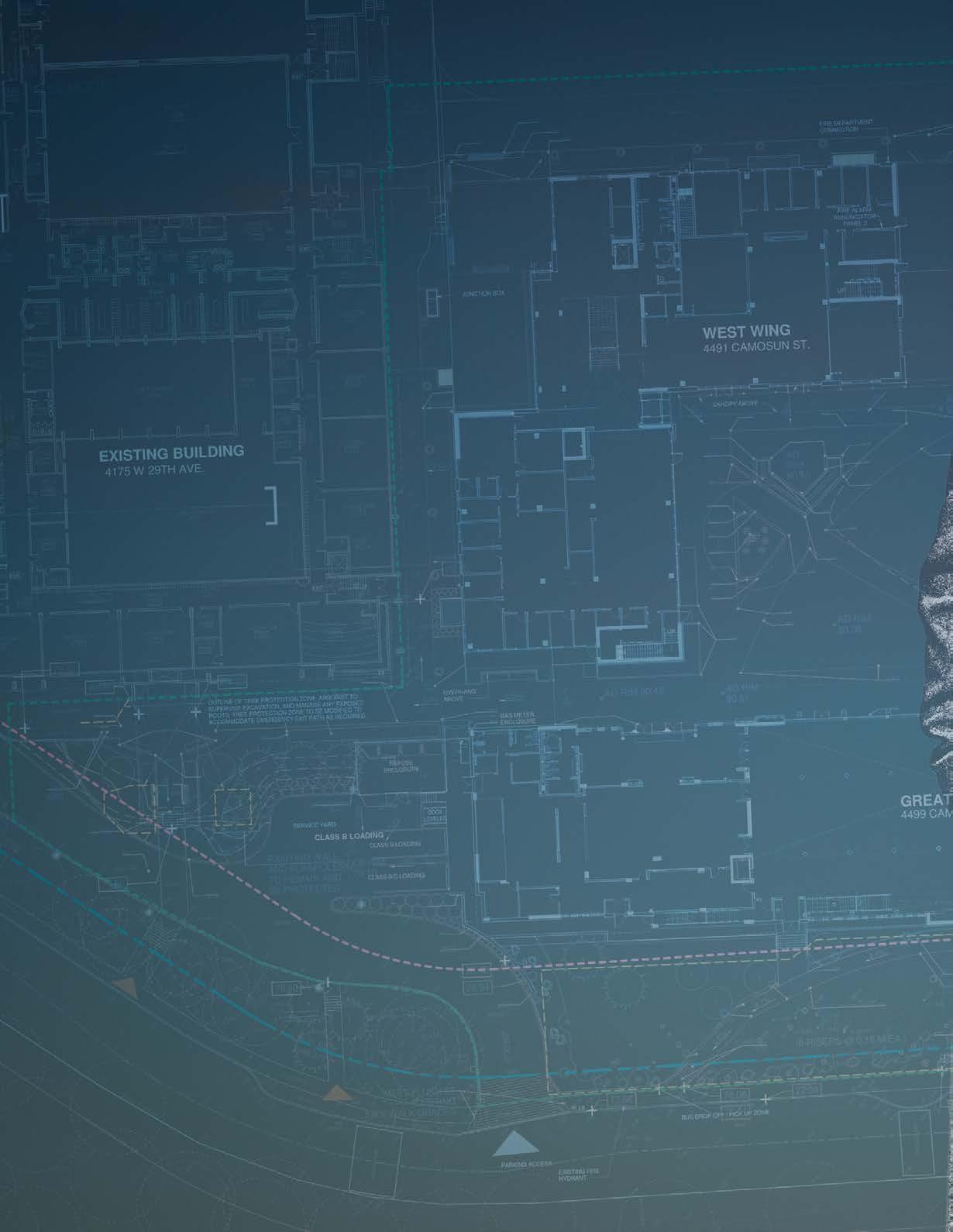 just delighted by the openness of the various spaces and by the abundance of natural light. It was truly amazing!” He also felt a deep sense of gratitude. “The completed buildings reflect the efforts of so many people. We worked with outstanding architectural firms, most recently Gensler and the IBI Group (now known as Arcadis). Equally important were the many volunteers who worked so hard to translate our shared dream into reality — all of the Board Chairs who served during my time, numerous Board members, and the members of the building committee chaired by Paul Dunstan. Additionally, I am grateful to the faculty and staff members who made significant contributions, most notably Neil Piller, Adrienne Davidson, and Dave Fitzpatrick, along with Gary Kern, Sanjay Chauhan, Sam Johnston, and the department heads and other faculty members involved in the design process. These buildings are their legacy!”