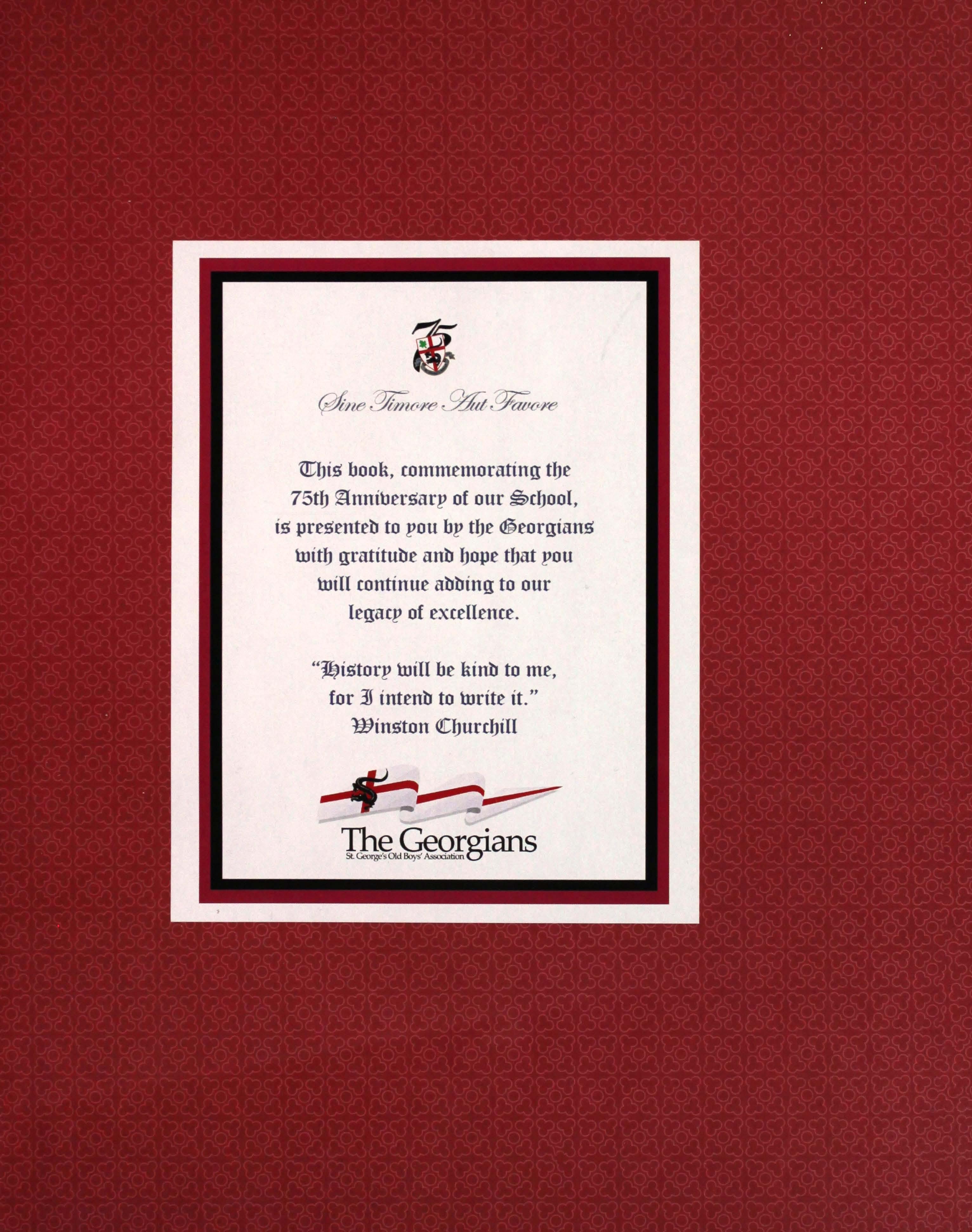 This book commemorates the 75th anniversary of St. George's, an independent day and boarding school for boys in Vancouver, British Columbia, Canada.
