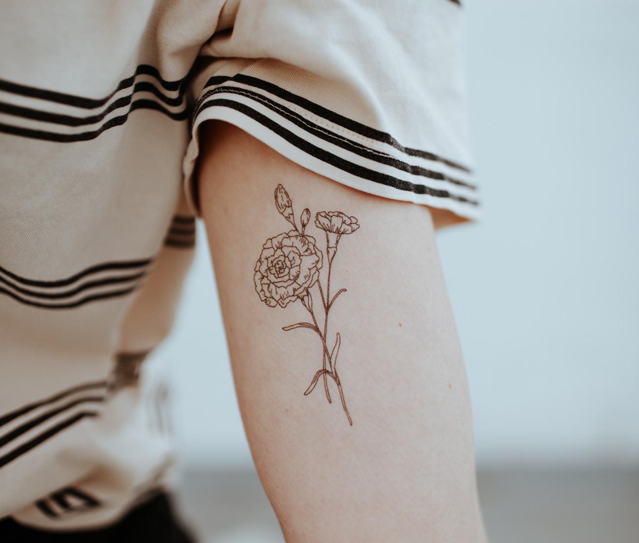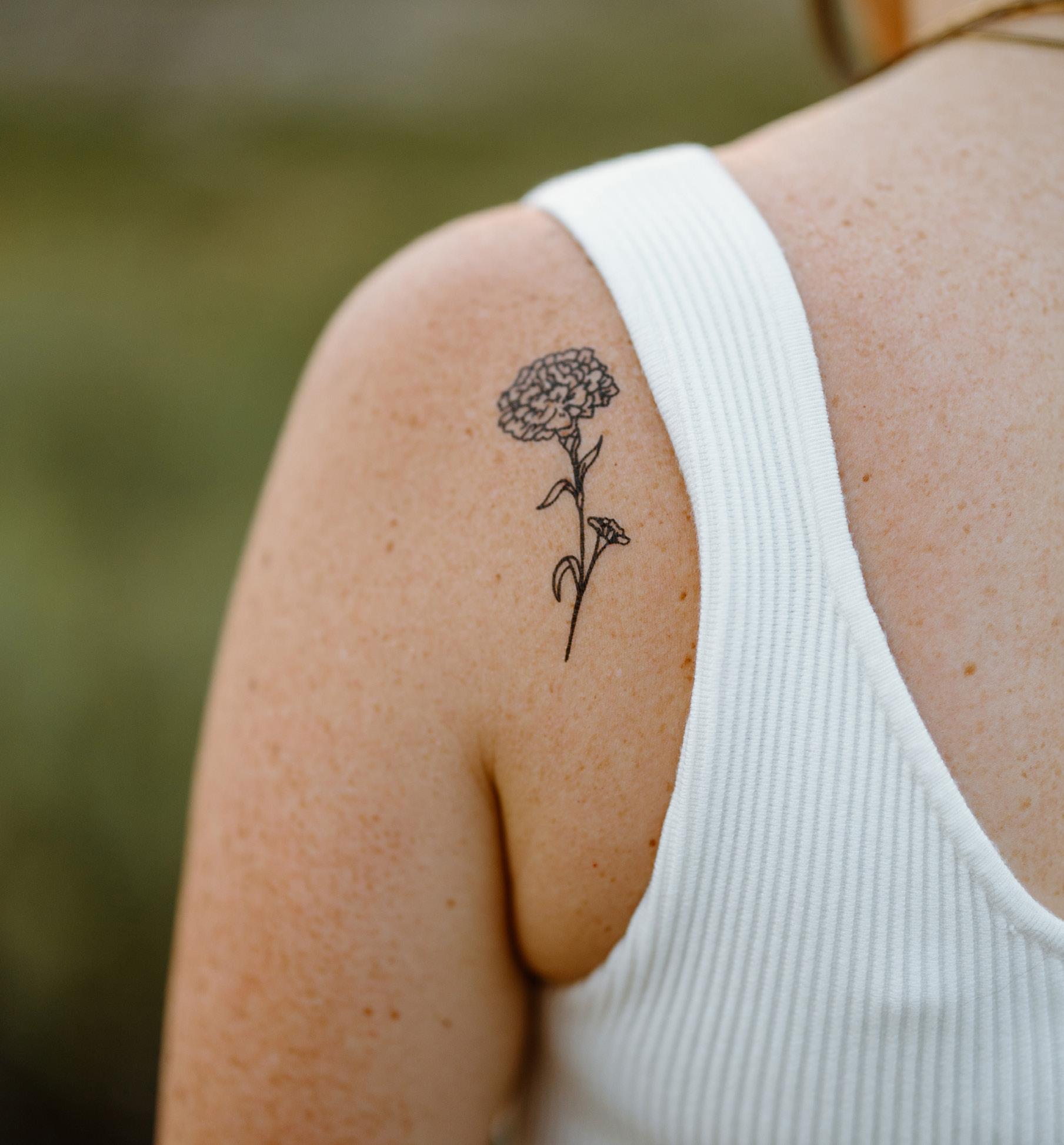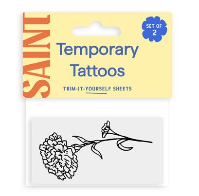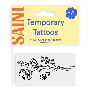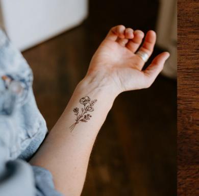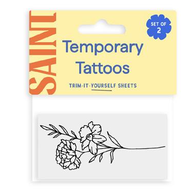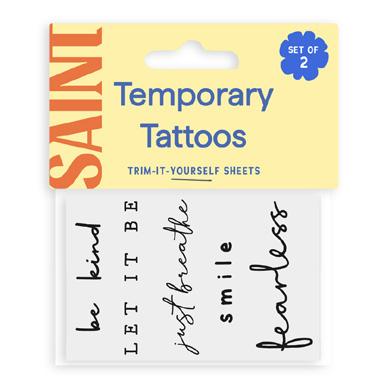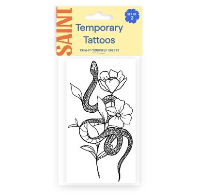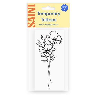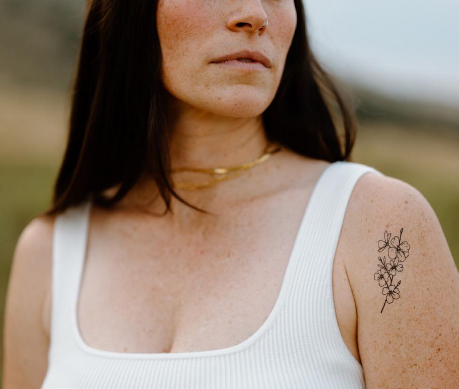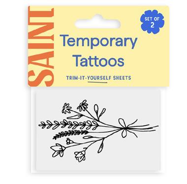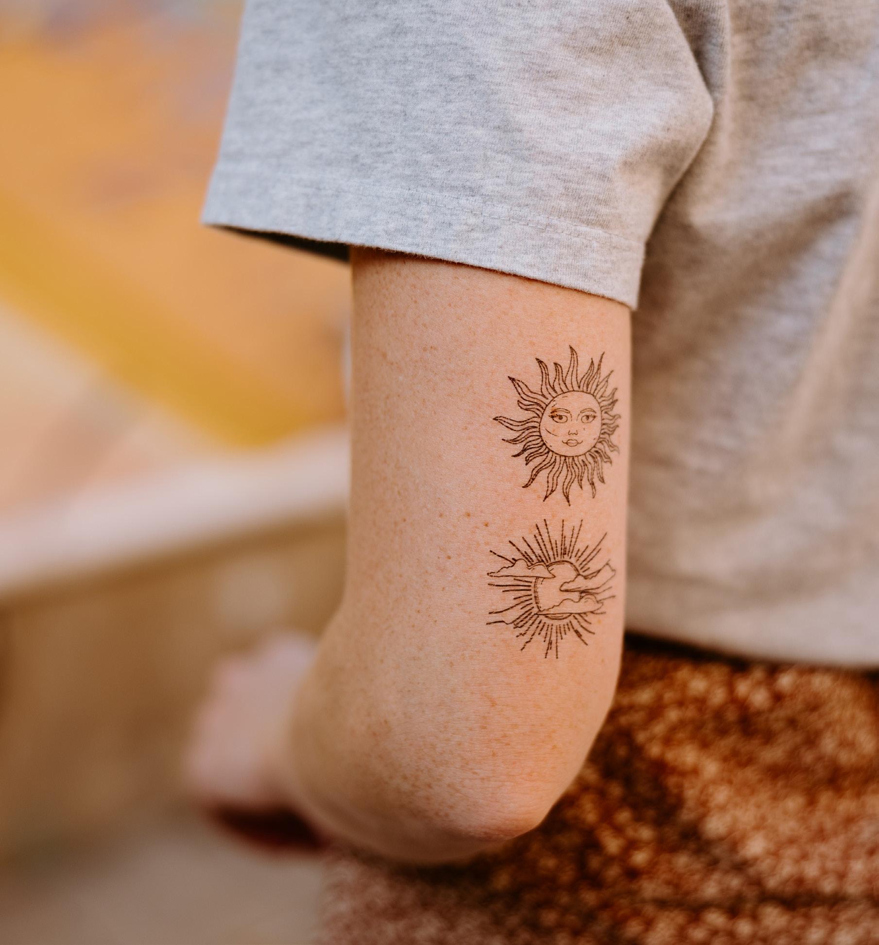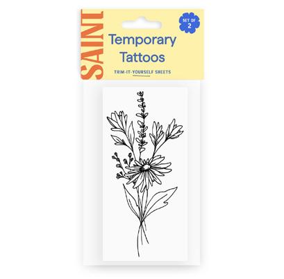 OUR TATTOOS TYPICALLY LAST 1-5+ DAYS, DEPENDING ON PLACEMENT AND CARE. FOR THE BEST APPLICATION, BE SURE SKIN IS DRY AND FREE OF OIL, LOTION, AND MAKEUP.