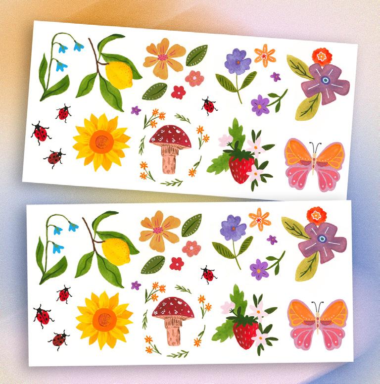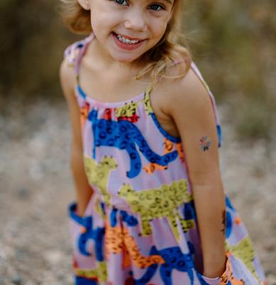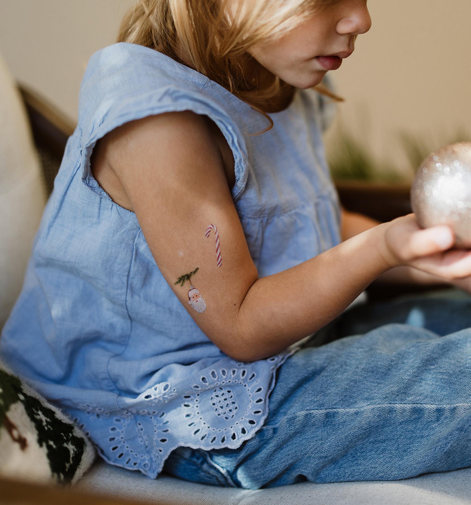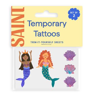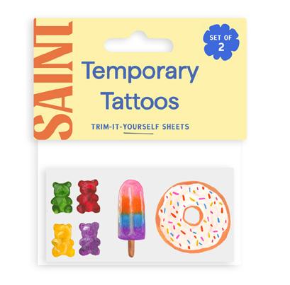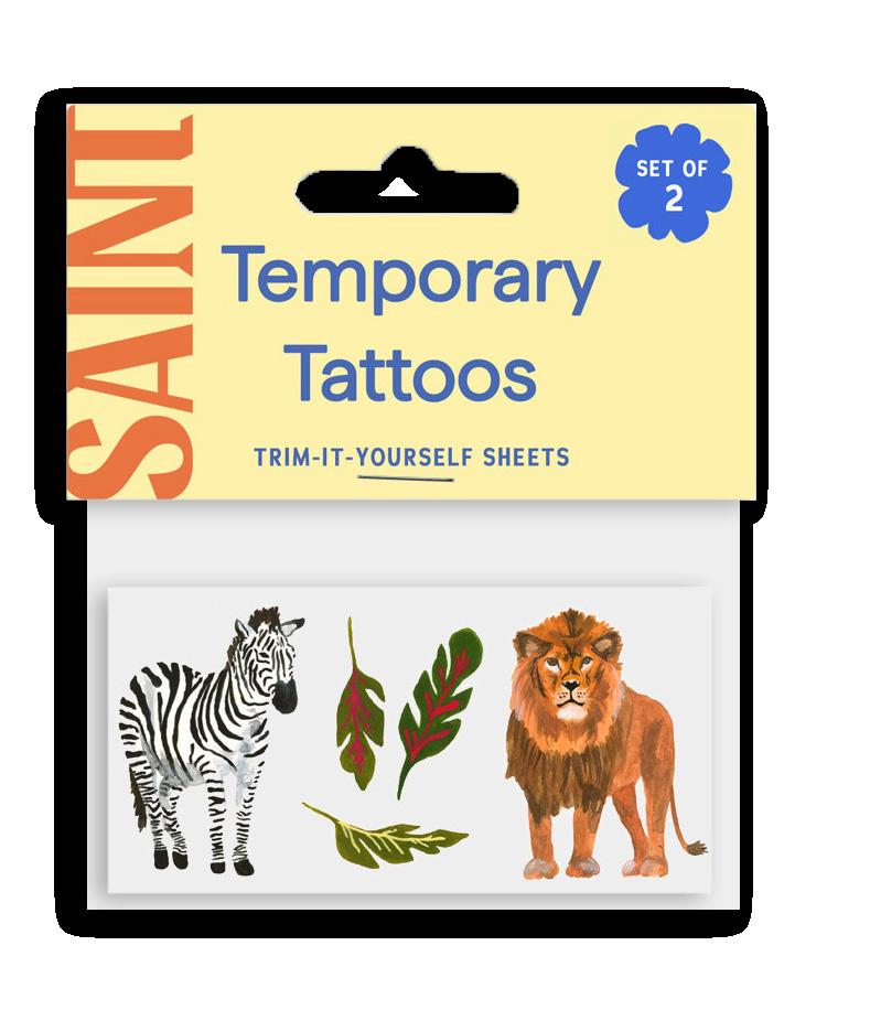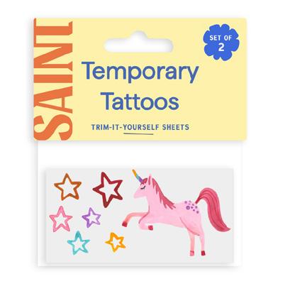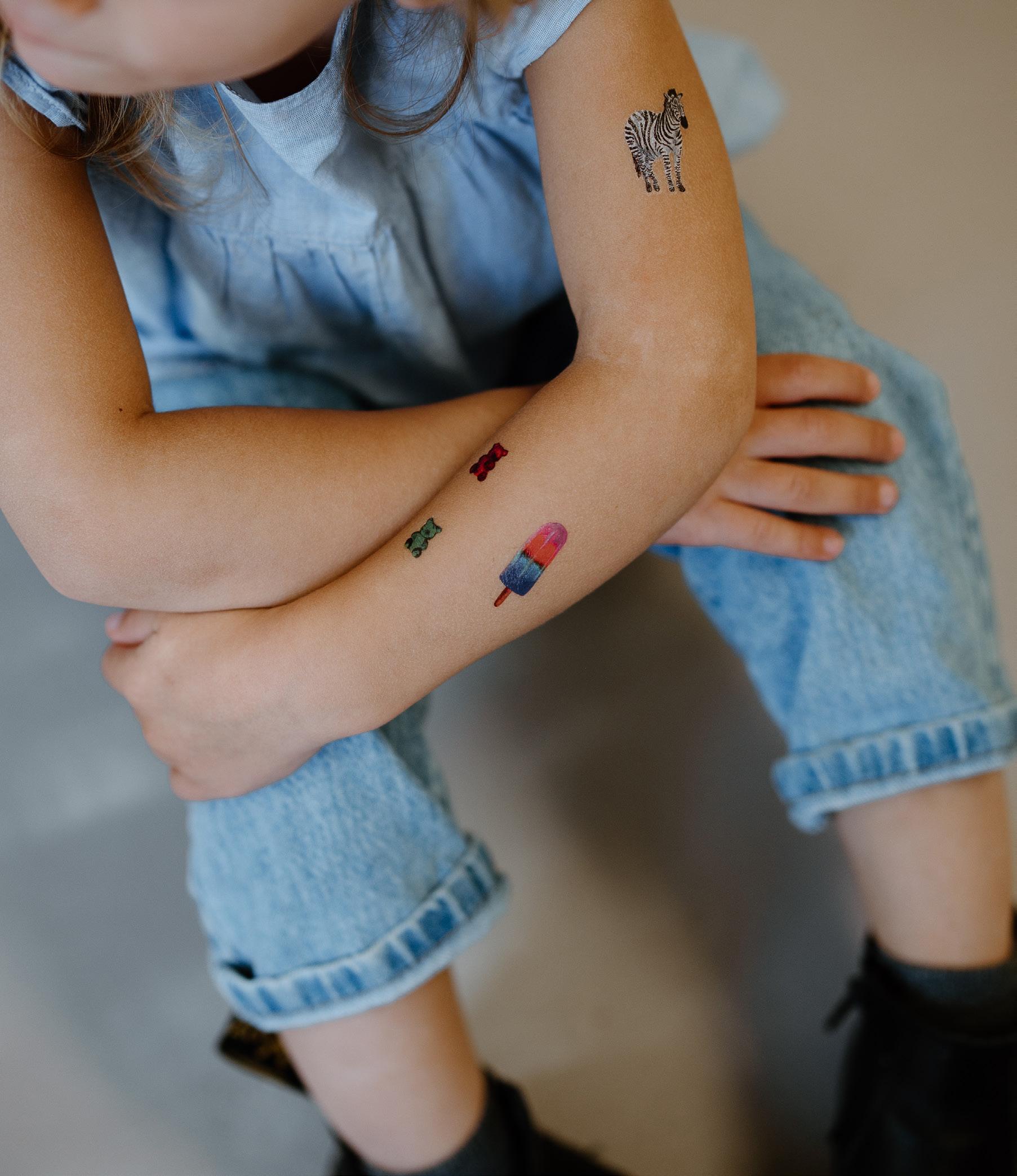 CREATED WITH THE SENSITIVE SKIN OF KIDDOS IN MIND, THESE TEMPORARY TATTOOS ARE MADE IN THE USA WITH FDA-APPROVED, SKIN-SAFE INK. OUR WATERCOLOR DESIGNS ARE PERFECT FOR A BIRTHDAY PARTY, GIFT BAGS, OR WHENEVER YOU WANT A FUN WHIMSICAL ACCESSORY. EACH SHEET CAN BE CUT INTO MULTIPLE TATTOOS, OR WORN ALL AT ONCE FOR ONE BIG TATTOO!