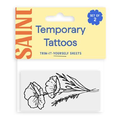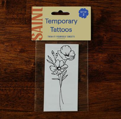 MEET OUR ORIGINAL COLLECTION OF TEMPORARY TATTOOS — THE FAN FAVORITES THAT STARTED IT ALL. THINK WILDFLOWERS, POPPIES, BUTTERFLIES, AND ALL THE DREAMY FLORAL DETAILS YOU LOVE. EACH SHEET IS PERFECTLY SIZED AT EITHER 1.5” X 2” OR 2” X 3”, MAKING THEM IDEAL FOR MIXING, MATCHING, AND TESTING OUT TATTOO PLACEMENTS BEFORE GOING PERMANENT.